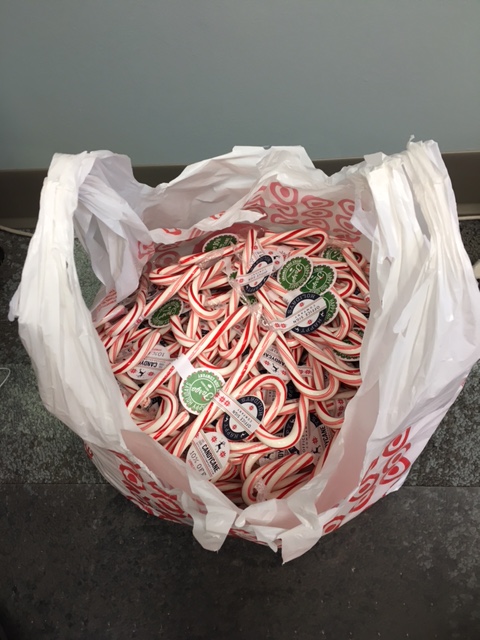 One of two bags of candy canes that were distributed