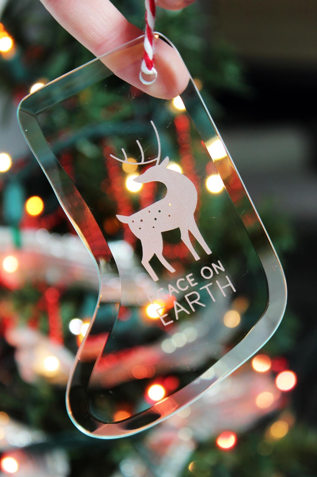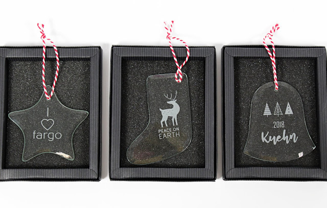 We have a laser engraver, Zund, heat press, and a large format printer, to name a few; and we’re looking into more machinery for 2019! We also have the ability to etch glass for a sleek, elegant look. Hence, the newest product to our shelves: Custom Glass Ornaments!