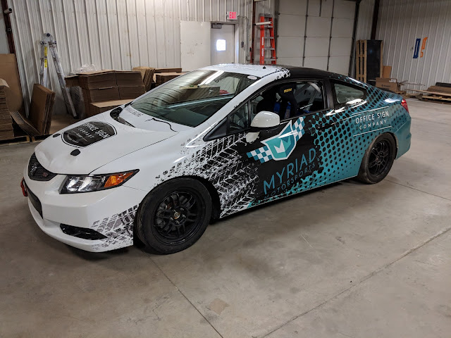 Josh received his 3M and Lowen credentials in Hutchinson, Kansas in January 2015. They offer a week long training course and a two-day test. Since he already had a year of experience installing, the training was condensed down to five days. Three of those days went over what all 3M would be expecting, and two days were spent testing on each station. One must pass 10 timed install stations (wall, floor, two types of brick walls, corrugated trailer, pre-spaced lettering with rivets, commercial van, and three sections of a Chevy HHR) as well as a written test.