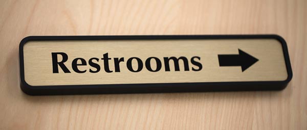 - Restroom Signs. Although these signs are typically not the most glamorous that you will ever purchase, they are arguably the most essential to your workplace. Not only do building regulations require the implementation of restroom signage, but whenever you have visitors to your place of business, you must relieve their stress by having clearly indicated restroom signage. We have expanded our restroom signage line as of late by adding Title 24 California Braille signage, as well as New York Braille Signage. Shout out to our friends on the east and west coasts.